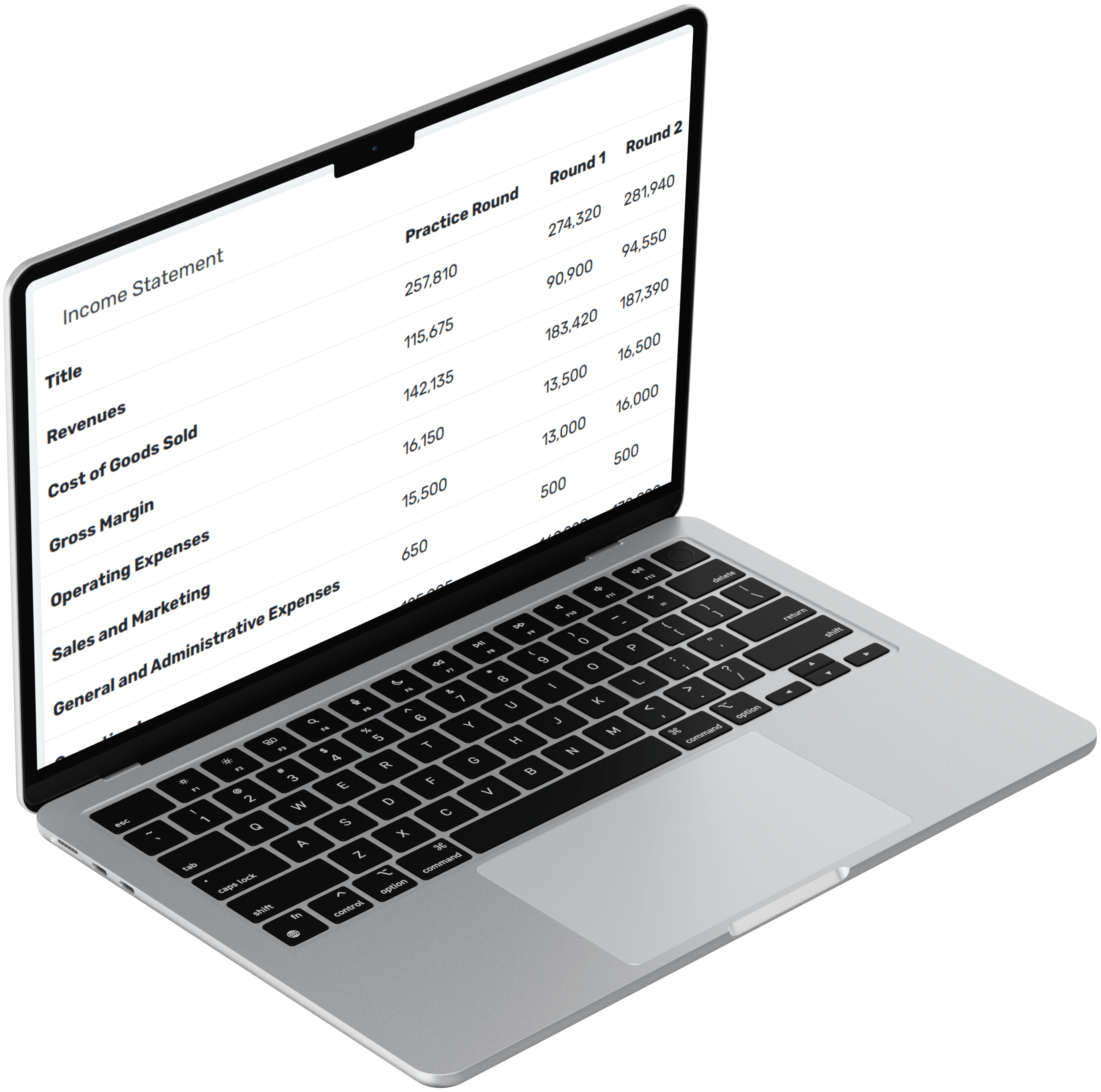 FINANCIAL ANALYSIS Students are able to review financial trends and the overall success of its business model and strategy with monthly income statements.