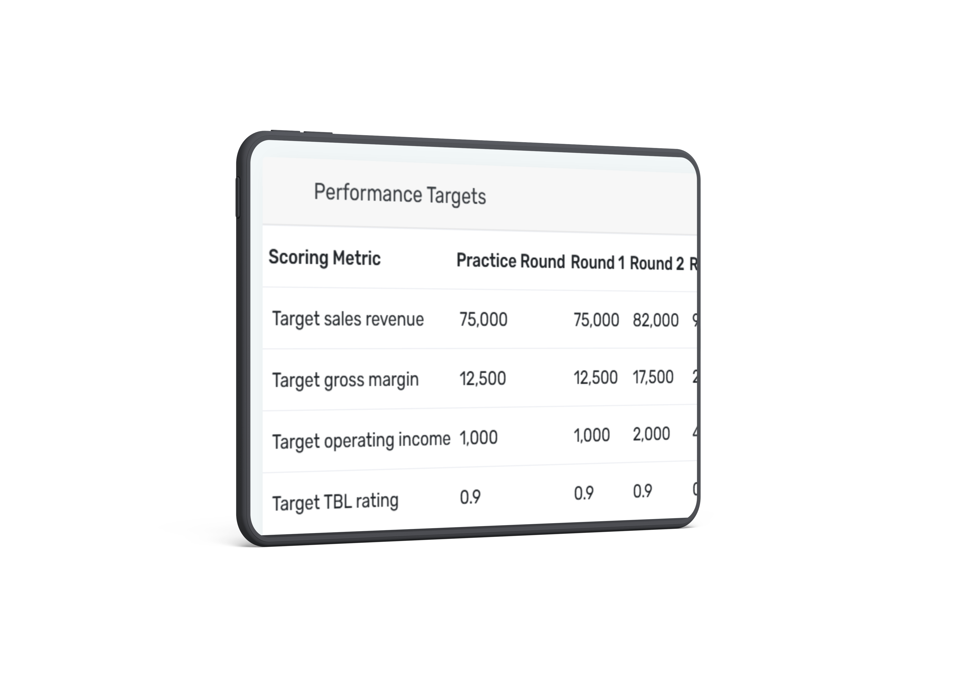 Once unit sales and market shares are awarded, the company and industry reports are then generated and become available to students by accessing their company Dashboard. The Dashboard provides the Current Month Score and the Game-to-Date score along with key financial metrics and competitive KPI data for the company. Students can assess the strength of their business model and strategy by comparing the company’s results to the high, low, and average data for the entire industry. The Current Month Score is determined by how actual results compare to performance targets for four criteria: Sales Revenue, Gross Margin, Operating Margin, and a Triple Bottom Line rating. A triple bottom line rating is a composite rating reflecting your performance on health and wellness, environmental sustainability and financial metrics. Performance targets for the four performance criteria are provided for each decision round in the Performance Targets report.